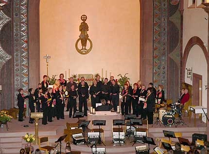 Eindrucksvoll gelangen danach die Spirituals "Deep River" und "Swing Low". "Joshua fit the battle of Jericho" bezog seine Reize aus dem Wechsel von Frauen- und Männerstimmen. Alle drei Stücke hatte Ralf Petersen arrangiert. "Joyful Joyful". eine moderne Fassung von Beethovens Hymne "An die Freude" beschloss den Programmteil des Chors.