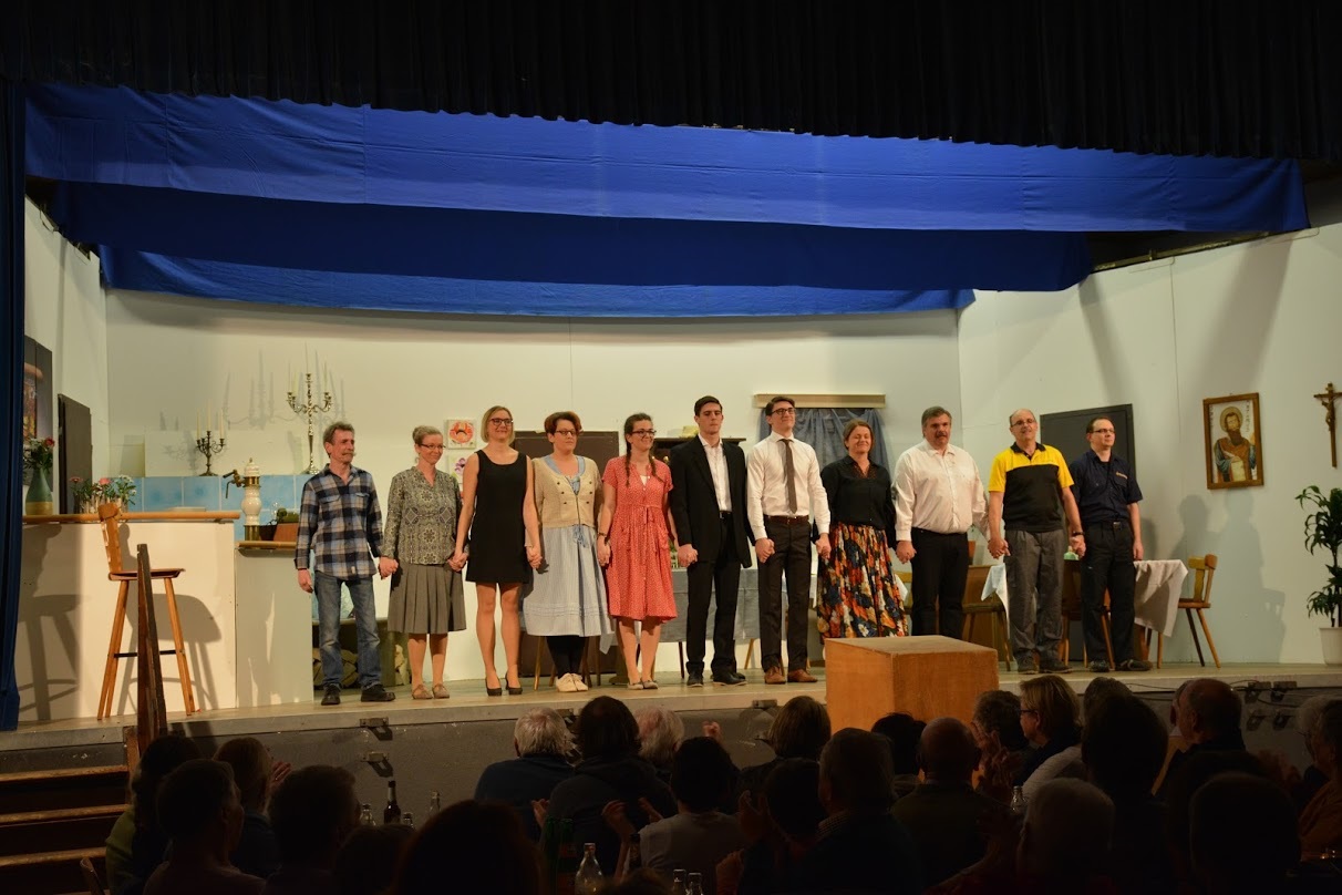 Eine besondere Anerkennung geht an Nadine Hanke, die auf der Bühne stand und hinter der Bühne die Eigenschaften der Schauspieler durch ein typgerechtes Make Up unterstrich. Fast arbeitslos war der Souffleur Arno Neumeier, der im „Kästchen“ die Aufführung sehr aufmerksam verfolgt, damit kleine Hänger gerettet werden können und das Publikum sie gar nicht wahrnimmt. Als kreativer Kopf ist Bernd Vogel für das Bühnenbild verantwortlich und wird von vielen fleißigen Händen unterstützt. Ob das Theaterstück gut wird hängt viel von den Schauspielern und viel vom Tontechniker ab. Raimund Hutt stellt die Regler am Schaltpult professionell so ein, dass jeder alles gut verstand. Bei so einer großen Theatergruppe muss es einen Häuptling geben. Diese verantwortungsvolle Aufgabe hat Ralf Bauer übernommen. Als Regisseur motiviert, kritisiert und lobt er diese starke Gruppe, was sie ihm mit hohem Einsatz und Spielfreude Bühne danken.